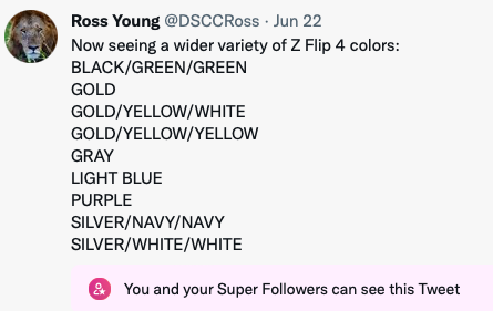 The source mentions that the gray color option will likely see the highest production figures within the first few months of the Galaxy Z Flip 4 hitting the shelves. Samsung also expects purple and gold to be fairly popular, which makes sense, given that these two color options have been used to great success by the original Galaxy Z Flip.