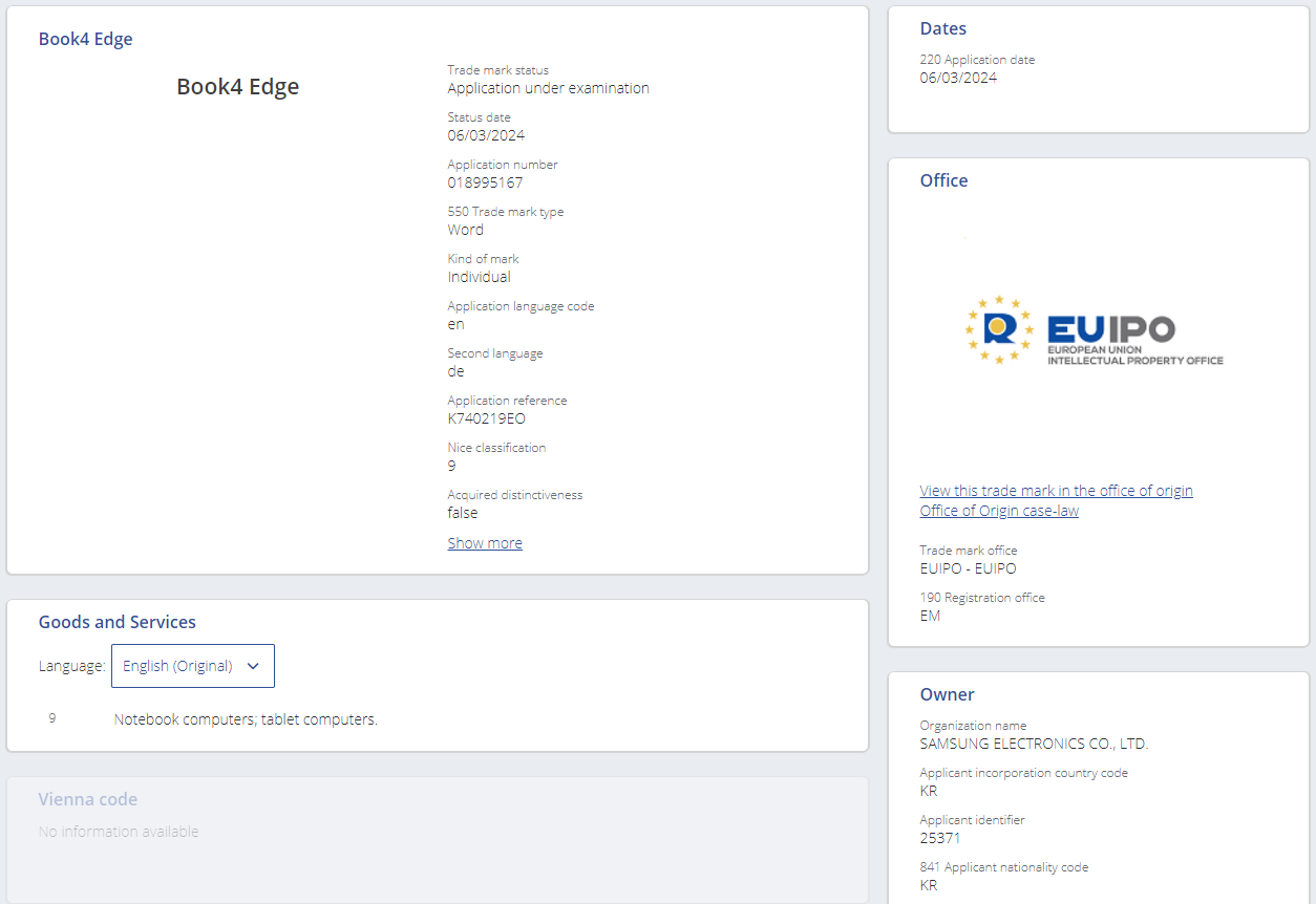 This new Book 4 Edge trademark is associated with notebooks and tablet computers. So, what is it, exactly? There's no way to know with certainty, but it's interesting that the trademark application makes no mention of software features. So, whatever Book 4 Edge is, it's unlikely a Windows OS software feature akin to the Edge Panel for One UI.