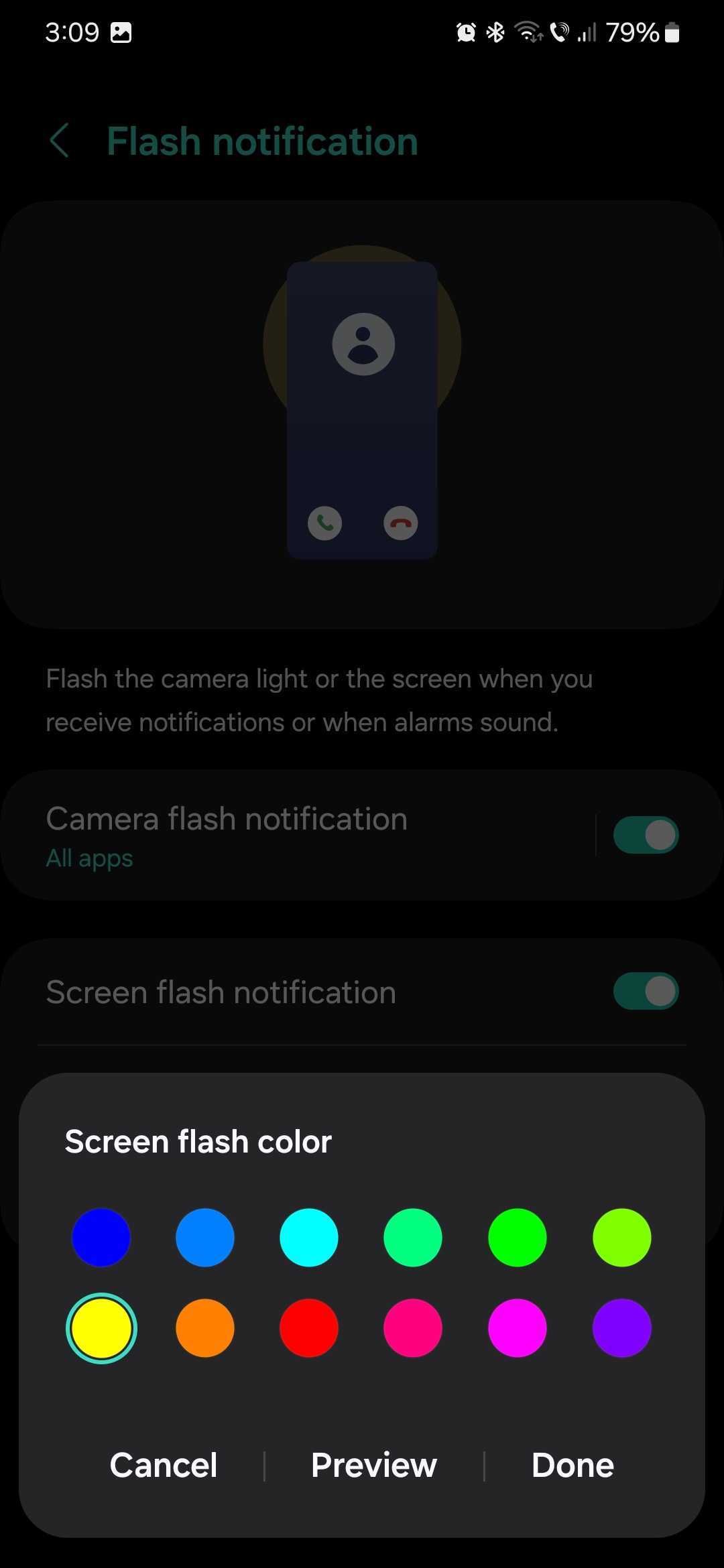 Conveniently, once you've customized flash notification settings to your liking, you don't have to wait for a call or a message to reach your phone to see if you got the right setup. You can tap the “Preview” button for a demonstration of what these extra notification visual cues look like on your device.