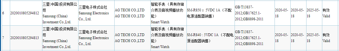 As evident from the screenshot below, the SM-R840 and SM-R850 have both received their 3C or Compulsory Certification of China. This is required for products imported and sold in the country.