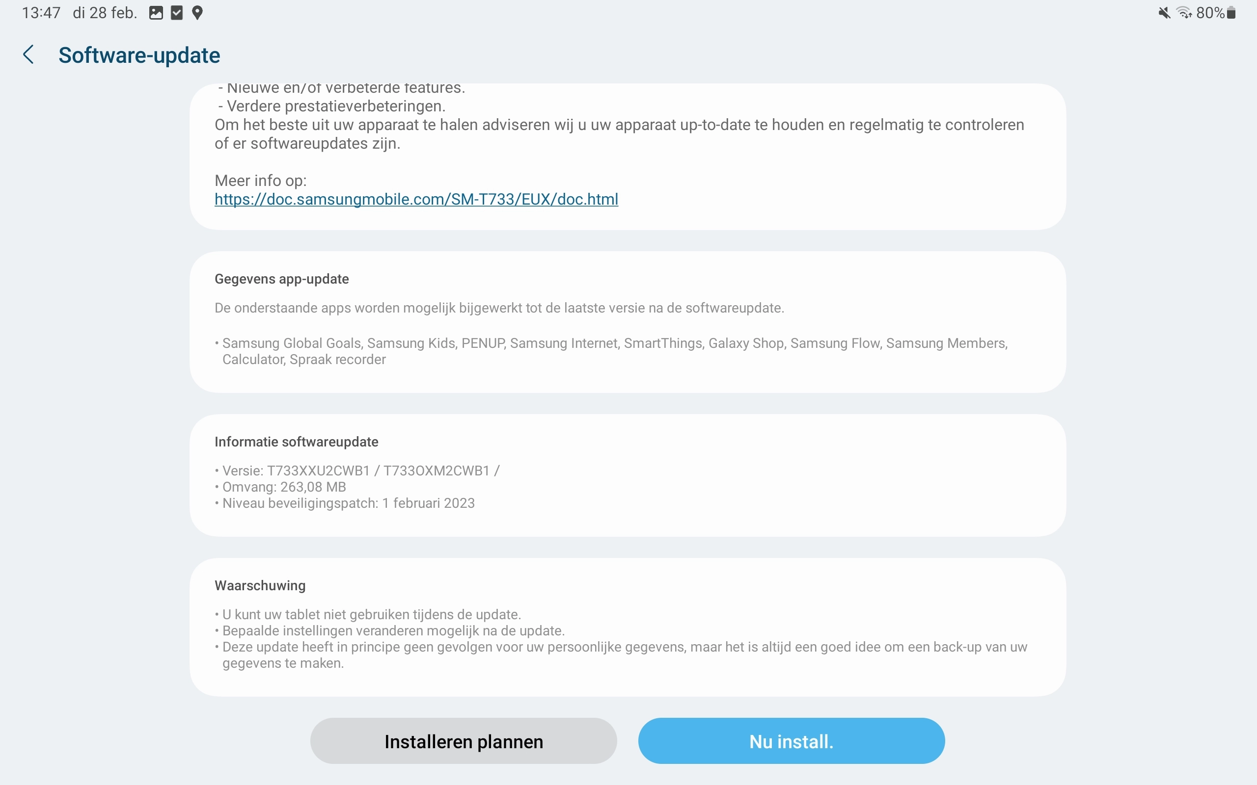 Apart from improving the security and stability of the tablet, the February update for the Galaxy Tab S7 FE also includes new versions of apps such as Global Goals, Samsung Kids, PENUP, Samsung Internet, SmartThings, Galaxy Store, Samsung Flow, Samsung Members, Calculator, and Voice Recorder.