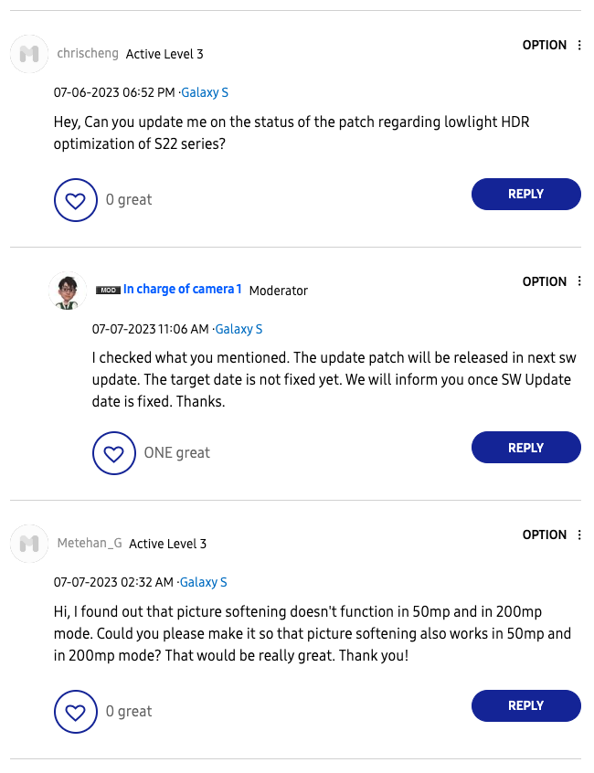 Unfortunately, many months have passed by, but the software update still hasn’t been rolled out. Well, Samsung has now revealed that the development of the software patch is complete, and it will be rolled out with the next software update. Considering that the tech giant has already rolled out the July 2023 security patch to the Galaxy S22 series, the fix for neon signs appearing blown out could come as a part of the August 2023 security update for the Galaxy S22 series.