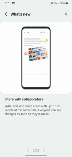 Samsung has also added two new gestures in the Labs section: swipe for split-screen multitasking and swipe for pop-up view. One UI 5.0 also shows currently active apps in the quick settings area. It also brings collaboration to Samsung Notes. According to the leaked screenshot, you can share your notes with up to 100 other users, and they can all see live changes instantly.