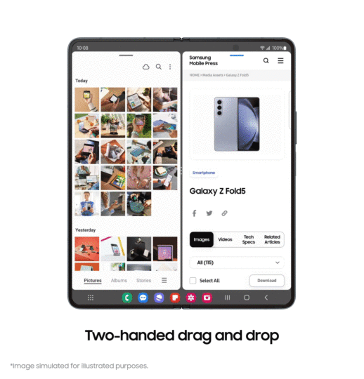 Through One UI 5.1.1, these foldable devices will gain access to new features, such as two-handed drag-and-drop of content from one app to another, the ability to open an app in a pop-up window over another app and then hiding that pop-up window at the side of the screen for quick access later, quick switching between pop-up view and Multi Window mode for supported apps, and more. The GIF files embedded below will give you a good idea of how some of these new features work.