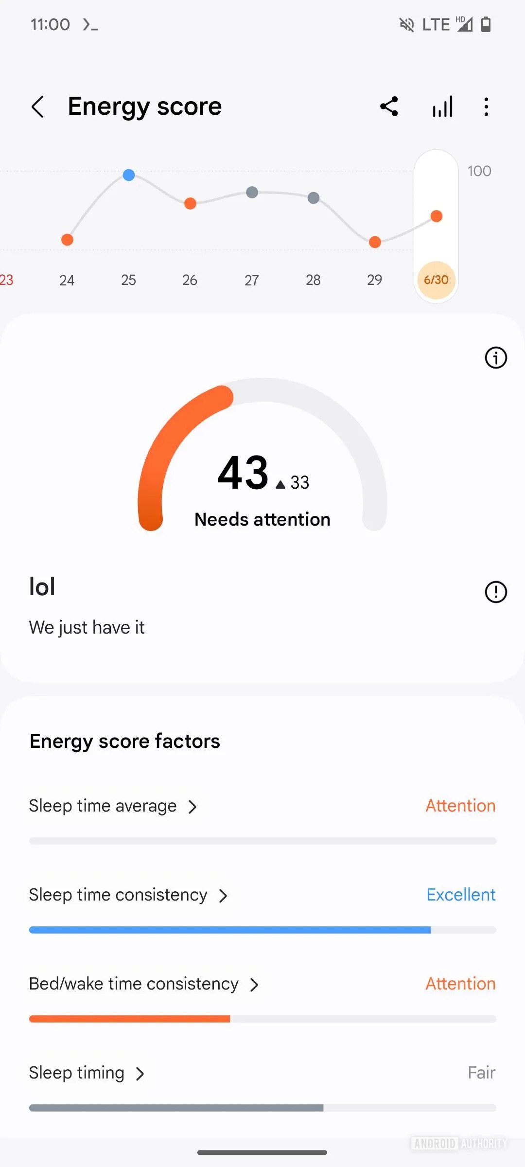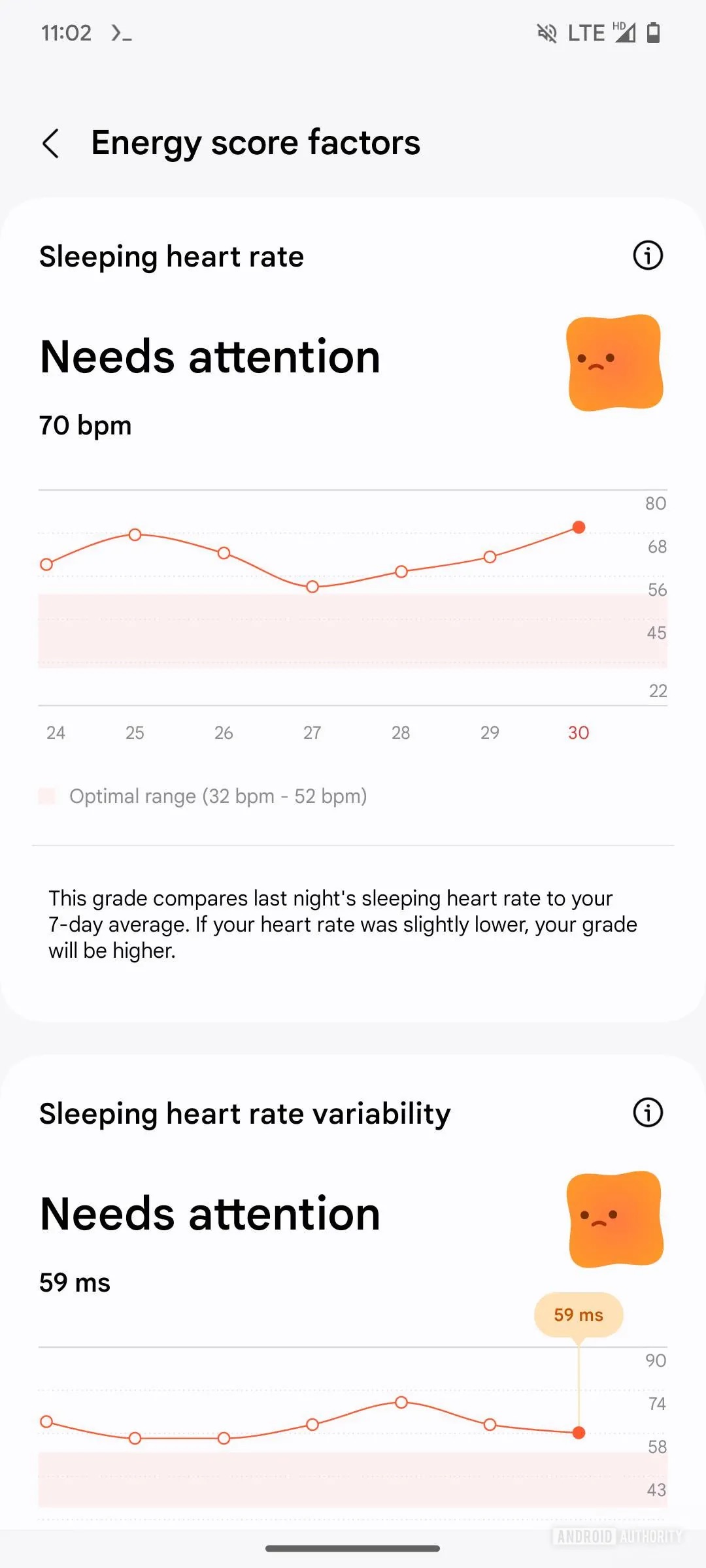 Along with that, it will break down that score into various aspects and tell you what needs improving and what doesn’t. You will be able to see these below the Energy Score. You can click on each aspect to see how you are doing in it. Above the score, it will show you your score for the previous days to give you the trend of your Energy Score.
