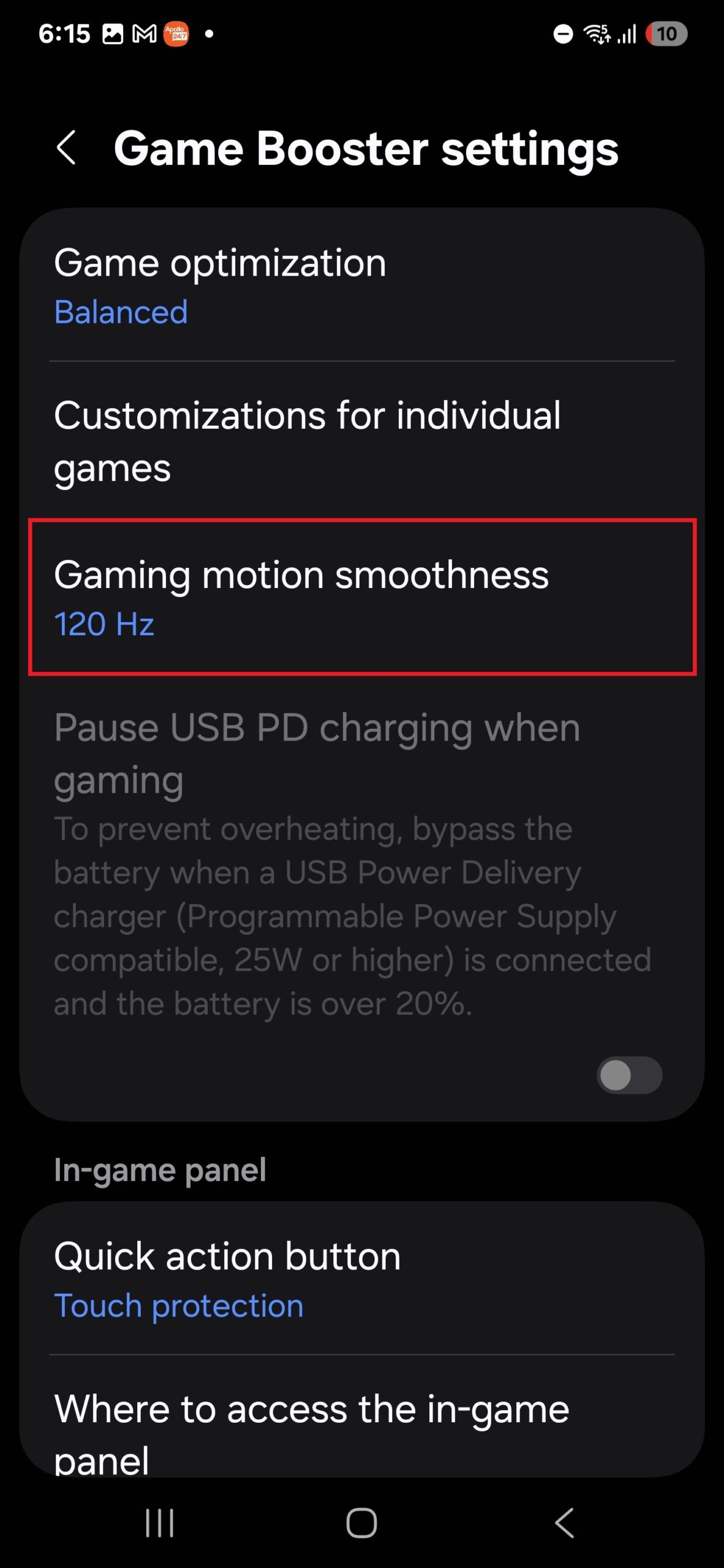 One such option is called “Gaming motion smoothness.” It allows Galaxy S25 users to select between 120Hz and 60Hz modes.