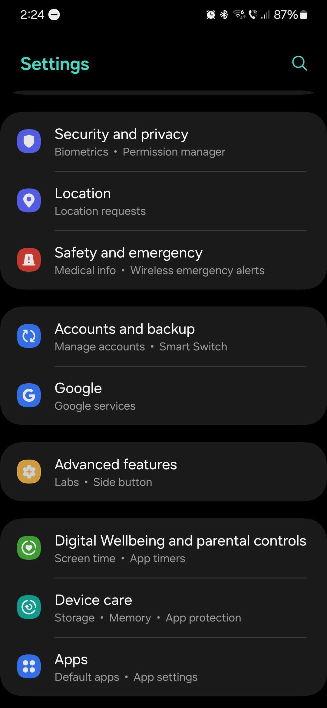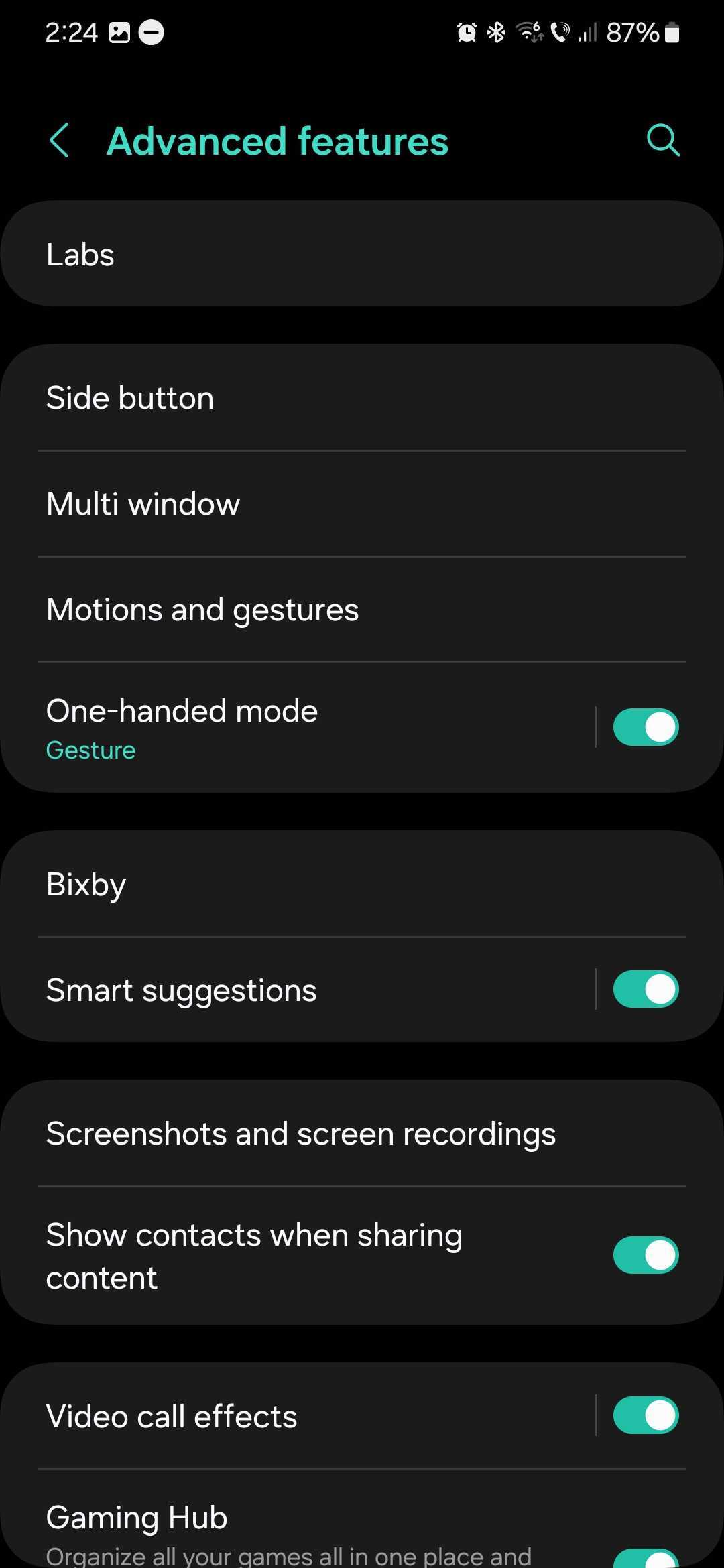 First, open the Settings app on your phone and go to “Advanced features,” then tap “Motions and gestures.”