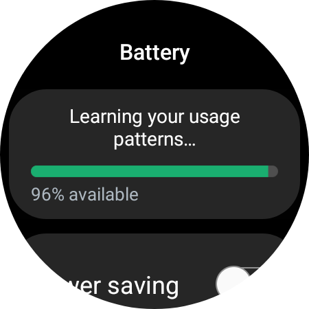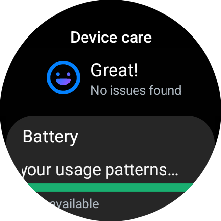 The new Battery and Device Care feature in One UI Watch 5 contains four elements, three of which can be tapped for additional information and access to more features: