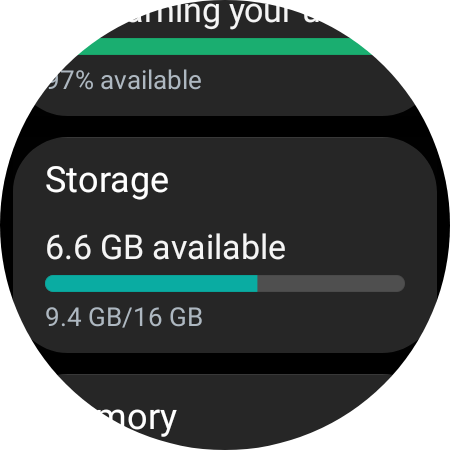Similarly, Storage is the same as it used to be in One UI Watch 4, except Samsung moved it from the “About watch” menu to the new “Battery and Device Care” section.