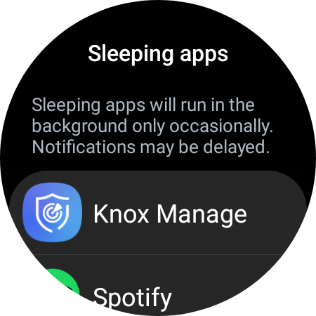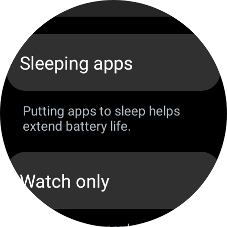 In essence, the Battery menu is almost unchanged. It's the same in One UI Watch 5 as in previous versions, except now it has a list of “Sleeping apps.” This list doesn't offer any user actions but shows you the apps that will run in the background occasionally.