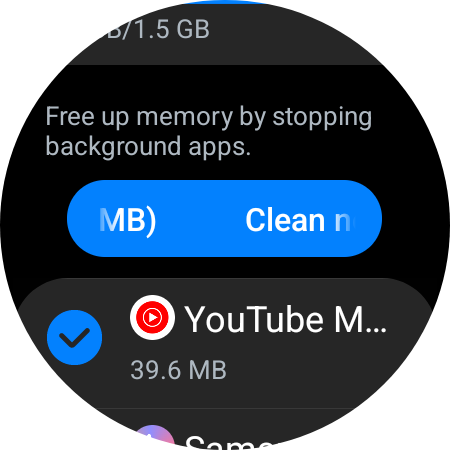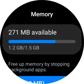 Finally, the Memory section is entirely new to Galaxy Watches and was introduced with the latest One UI Watch 5 update. Memory shows how much free RAM there is on your smartwatch and comes with a “Clean now” button that helps stop background apps to free up more RAM.