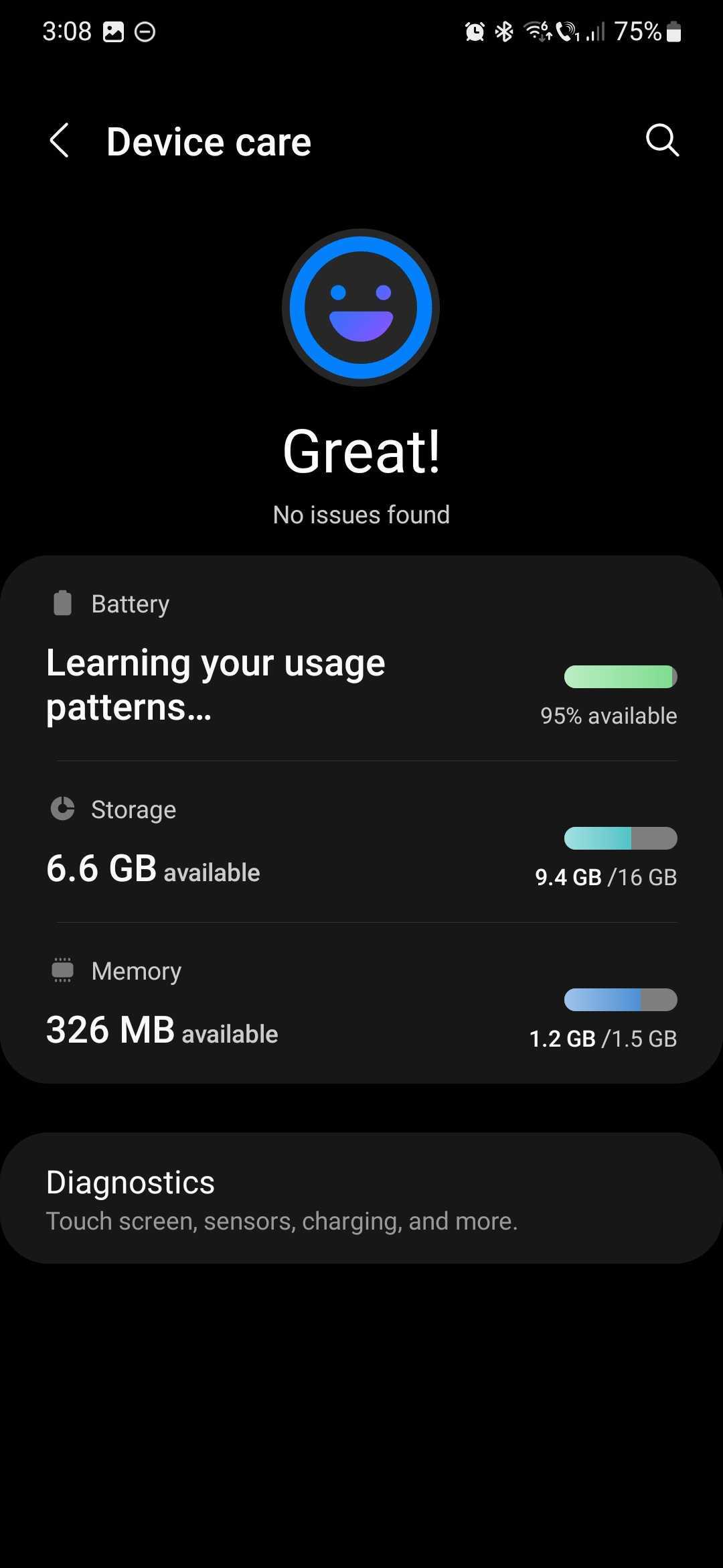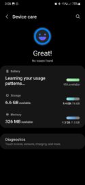 The only element missing from the Battery and Device Care section on smartwatches is the Diagnostics menu, which lets you perform tests to ensure everything on your watch is working properly. This feature remains exclusive to the Galaxy Wearable and Samsung Members mobile apps. At least for the time being.