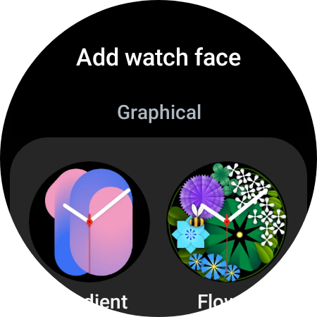 What has changed are the editing menus, i.e., the tile and watch face browsers that pertain to the editing screens. For example, if you tap and hold the watch face, you'll notice that the watch face selector still has a horizontal layout in One UI Watch 5. However, if you scroll all the way to the right and tap the “Add watch face” button, that's when you'll encounter the new vertically-oriented watch face browser.