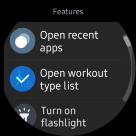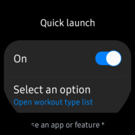 To enable this feature, open the Settings app on your Galaxy Watch, then access “Advanced features,” scroll down, and tap “Quick Launch.” Then tap the toggle to the “On” position, tap “Select an option,” and choose one of the desired actions to assign to the gesture — such as opening an app, enabling the flashlight, or opening the workout type list.