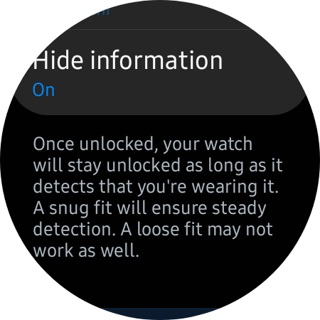 When you sit the smartwatch on your wrist, you'll be prompted to unlock it. Then, as long as you keep wearing it, the watch won't bother you with the lock screen PIN or pattern until you remove the device from your wrist and put it back on.