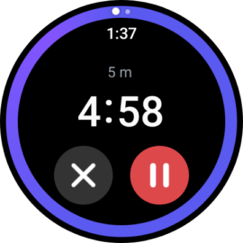 Next is the Timer tile. This tile is interactive and allows users to start timers without launching the Timer app. It has four buttons consisting of three pre-defined timers (5, 10, and 15 minutes) and a fourth button that lets you set a custom timer.
