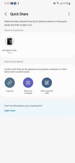 Samsung has released a new version of the Quick Share feature, and the update is available via the Galaxy Store. This new version brings improved device icons, so it's faster and easier to distinguish between nearby devices. Earlier, Quick Share displayed generic icons for phones, tablets, and other Galaxy devices. Now, the Quick Share menu shows an actual image of nearby devices. As you can see in the screenshot below, the Galaxy Z Fold 4's product image is displayed instead of a generic smartphone icon.