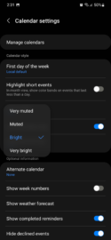 Samsung released one such update for its Calendar app recently. It pushes the app version to 12.3.01.1000 and adds an option to color the color brightness for events. The update is rolling out through the Galaxy Store and should at least be available for devices running One UI 4.1.