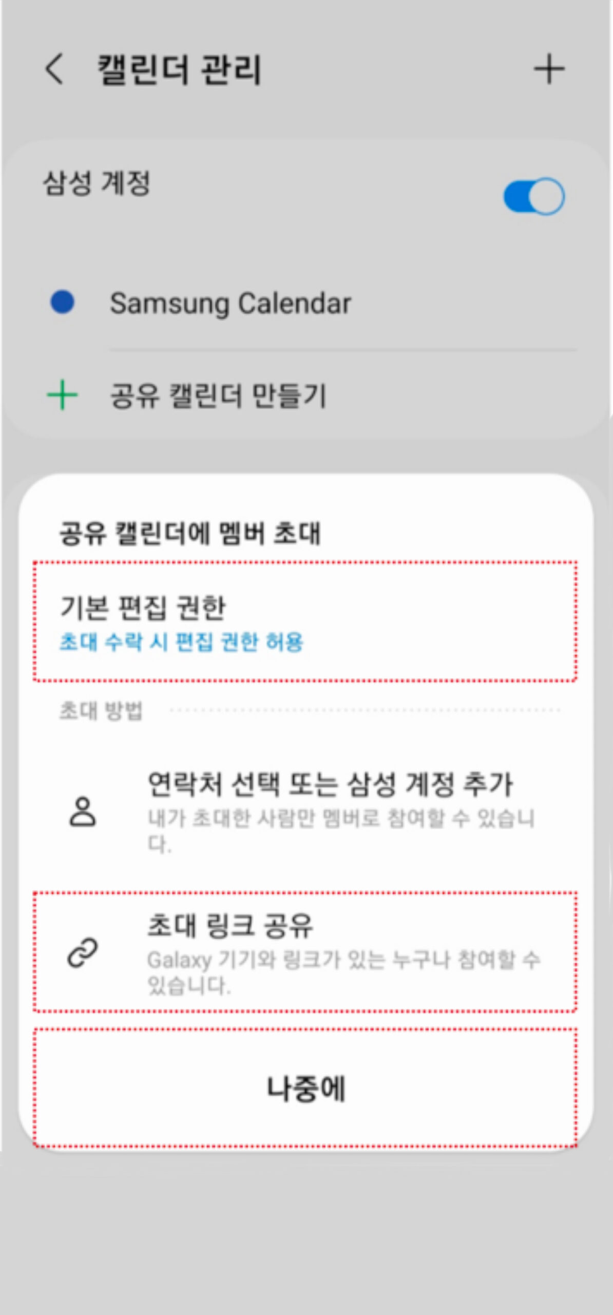It also allows sharing calendars with others and then set permissions on who can edit calendar entries and who can't. You can create shared calendars in the Samsung Calendar app by navigating to Calendar Settings » Calendar Management » ‘+ Create Shared Calendar .' Users can share calendar invites through simple links. You can edit permissions for existing shared calendars.