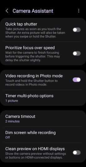 Note: Camera Assistant only runs on Android 13 and One UI 5 and above
