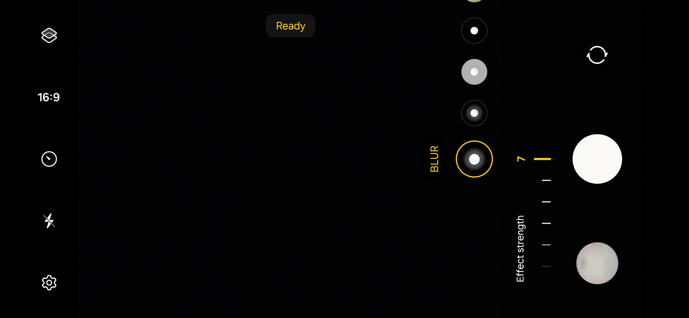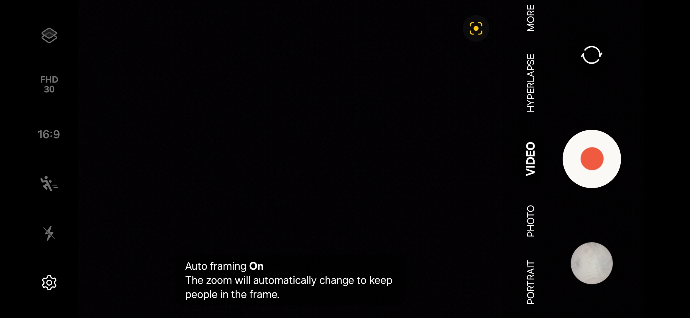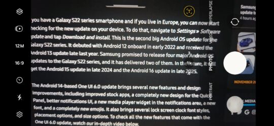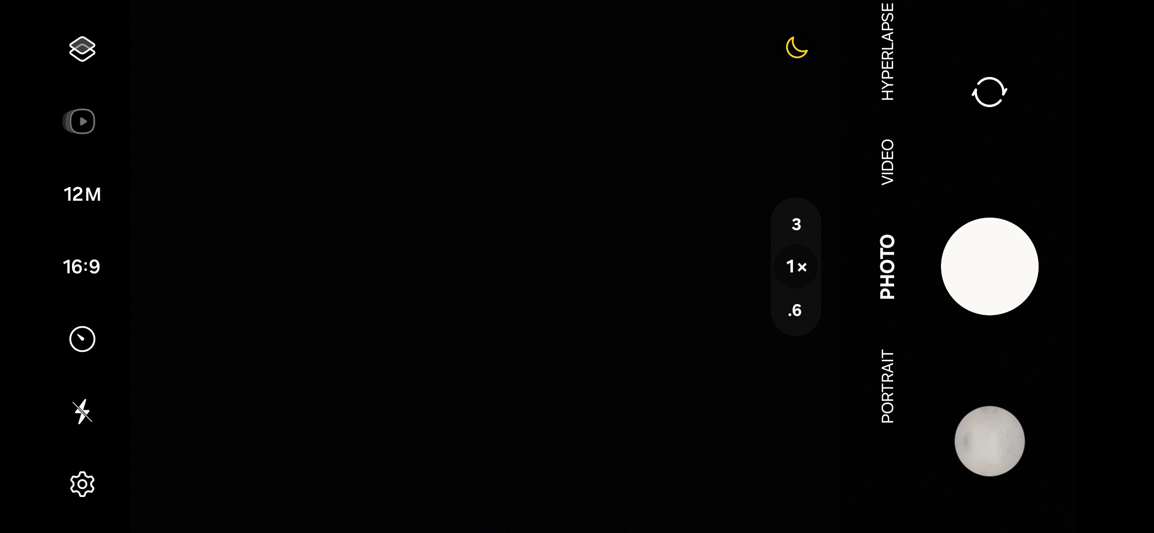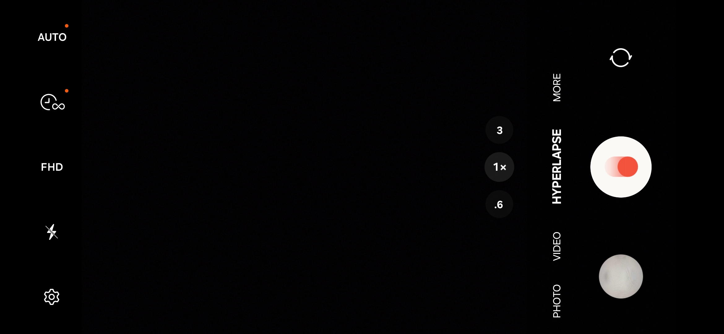 Last but not least, the leftmost area (uppermost in portrait orientation) contains a row of buttons for different settings, such as image and video resolution, flash controls, shutter button timers, Motion Video, Filters, Super Steady, Hyperlapse, and more.