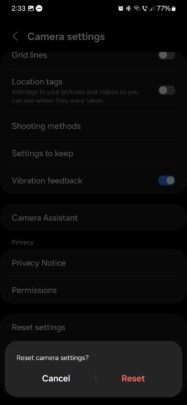 And you don't need to worry about messing up some Camera app settings, as you can always restore the default configuration. Just tap the cogwheel icon in the lower-left corner of the viewfinder (upper-left corner in portrait orientation), scroll down, tap “Reset settings,” and tap “Reset” again to confirm.