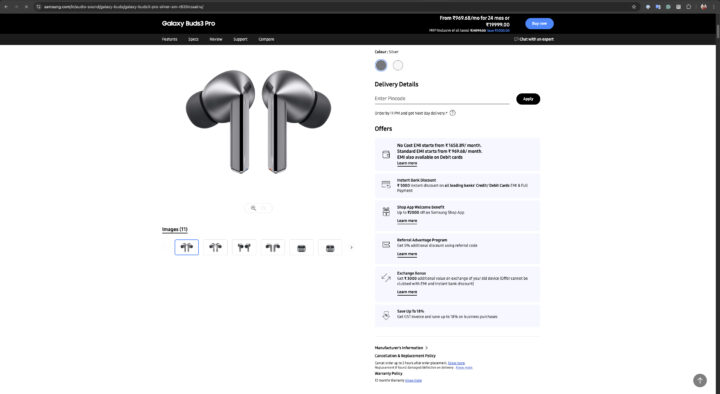 Moving on to the earbuds, Samsung is offering INR 5,000 cashback on the Galaxy Buds 3 Pro, and INR 4,000 cashback on the Galaxy Buds 3 and the Galaxy Buds FE. You can avail up to 24 months No Cost EMI on the first two but not the entry-level model.