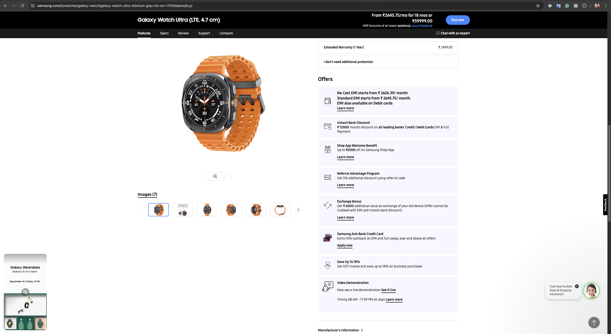 Starting with Samsung’s flagship smartwatch, the Galaxy Watch Ultra, the company is offering a massive INR 12,000 instant discount on the wearable if you make payment using any credit or debit cards from leading banks. You can either get that or INR 10,000 upgrade bonus. As for Samsung’s other smartwatch from this year, the Galaxy Watch 7, the company is offering INR 8,000 cashback on the wearable. You can avail up to 24 months of No Cost EMI on both products.