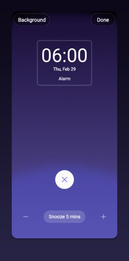 One of the most interesting additions is the option to select a custom background that you will see when an alarm goes off. You can select any image stored on your device or choose from a few preset options.