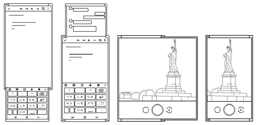 The sketches below were pulled from a WIPO application (via LetsGoDigital) that Samsung had filed in May. They depict a weird smartphone equipped with two slide-out displays. Or rather, one rollable display that extends out on two sides. The phone can roll the display out at the top, the right edge, or both simultaneously. In Samsung's vision, users would be able to control the rollable display through pinch and zoom gestures.