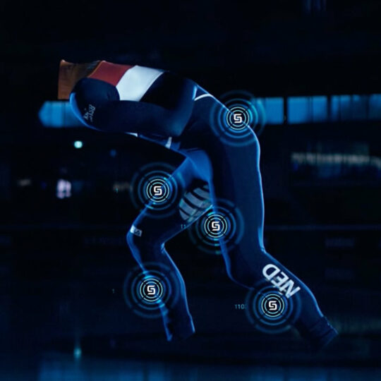 The Samsung SmartSuit was tailor-made for both short track racers and it features five integrated sensors. The suit was developed in collaboration with national coach Jeroen Otter and movement scientist Bjorn de Laat. The sensors transmit data via a wireless connection to the national coach's Galaxy S8 who then adjusts the training regimen accordingly.