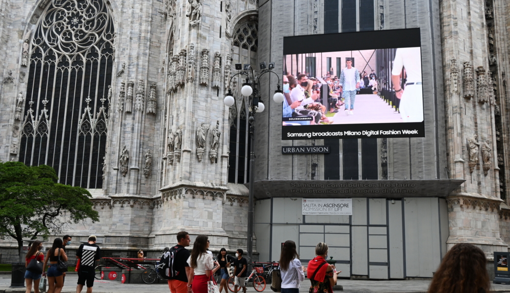 Milano Digital Fashion Week, which is running from July 14 to July 17, is being live-streamed on Samsung's QLED digital signage displays that are installed on the Duomo Cathedral, which is the most iconic square in Milan, Italy. Samsung is working with the event organizer National Chamber of Italian Fashion (Camera Nazionale della Moda Italiana) and the broadcasting partner Urban Vision to display the live broadcast to people in the city.