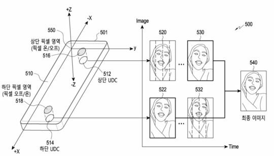 The patent describes a dual-UDC setup designed to improve facial recognition by scanning the subject's face from multiple angles at once, therefore, in a way, creating a 3D / stereoscopic scan. In rough translation, the patent application mentions that “according to various embodiments, the bio-verification of … highly reliable … can be possible.”