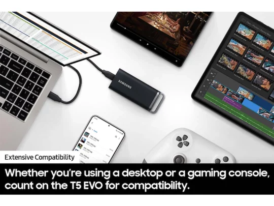 Other specs include AES 256-bit hardware encryption, compatibility with a wide range of devices, from PCs to smart TVs, game consoles, and cameras, and compatibility with the Samsung Magician Software.
