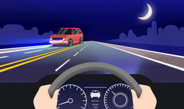 Disability Glare refers to a reduction of visual acuity that occurs when a bright light on a dark background shines directly toward the viewer. An example of Disability Glare is a vehicle driving on the other side of the road with long beams on at night.