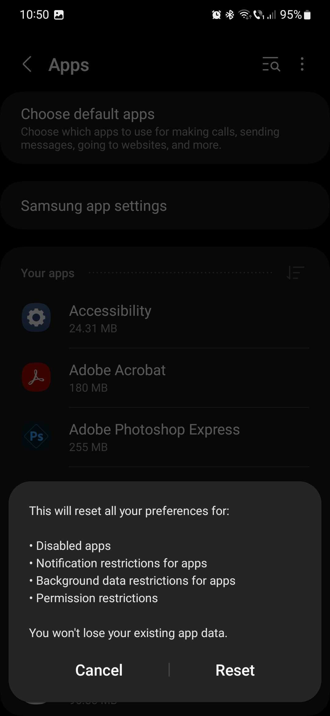 This action will reset preferences for disabled apps, notification restrictions for apps, background data restrictions, and permission restrictions. However, you will not lose your existing app data. Samsung says performing these steps should allow you to use the Messages app again.
