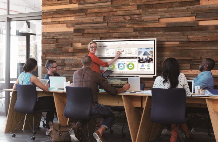 It can be flipped between portrait and horizontal orientations and has been designed for meeting rooms. The Samsung Flip features a height-adjustable stand and it can be wheeled around the office easily.