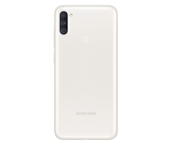The Galaxy A11 is the entry-level smartphone in the Galaxy A series, and it features a 6.4-inch HD+ LCD screen with an 8MP punch-hole selfie camera on the top-left. On the rear, the smartphone has a triple-camera setup, consisting of a 13MP (F1.8, AF) primary camera, a 5MP (F2.2) ultrawide camera, and a 2MP (F2.4) depth sensor. There's also an LED flash and a capacitive fingerprint reader on the rear.