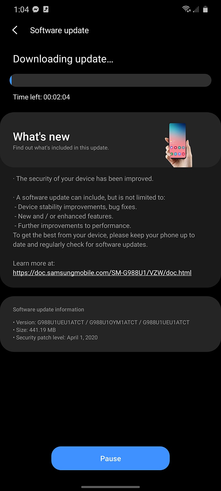 As far as carrier models are concerned, Sprint recently rolled out the April security update for its Galaxy S20 variants, and other carriers will likely follow soon. If you're using an unlocked version of the S20, S20+, or S20 Ultra, you can download the update right away from the phone's Settings » Software update screen. If the update doesn't show up, you can also download the latest firmware from our archive and install it manually on your phone using a Windows PC.