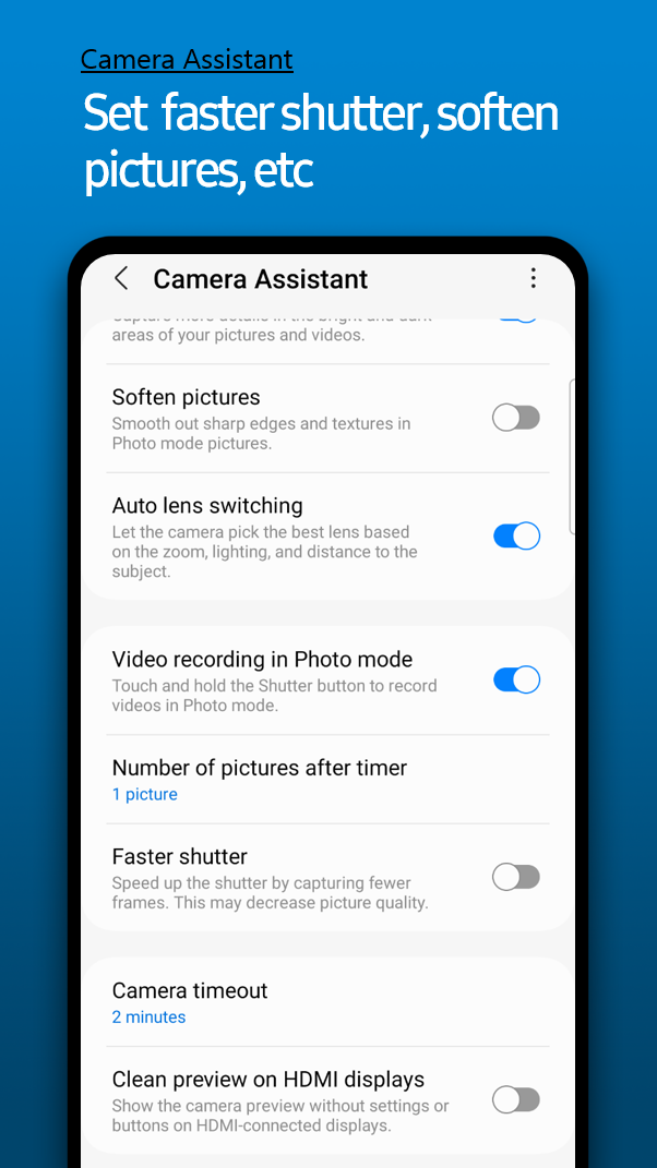 A few days ago, Samsung released the Camera Assistant app for the Galaxy S22. The company formally announced the app today. It brings the ability to enable or disable certain features in the stock camera app. For example, you can disable Auto HDR, a feature that was available in the stock camera app in older Galaxy phones, but it was later removed.