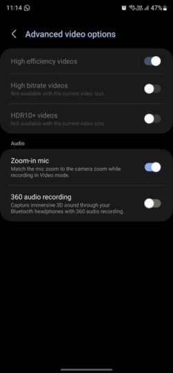 According to several reports, Samsung has disabled the High Bitrate Videos option in the 8K video recording mode. Several Galaxy S23 Ultra users are reporting that the feature was available at launch but disappeared after installing the June 2023 security update. Right now, the High Bitrate Videos option is greyed out in the Camera app's settings section. You can find that feature in the Advanced Video Options section of camera settings.