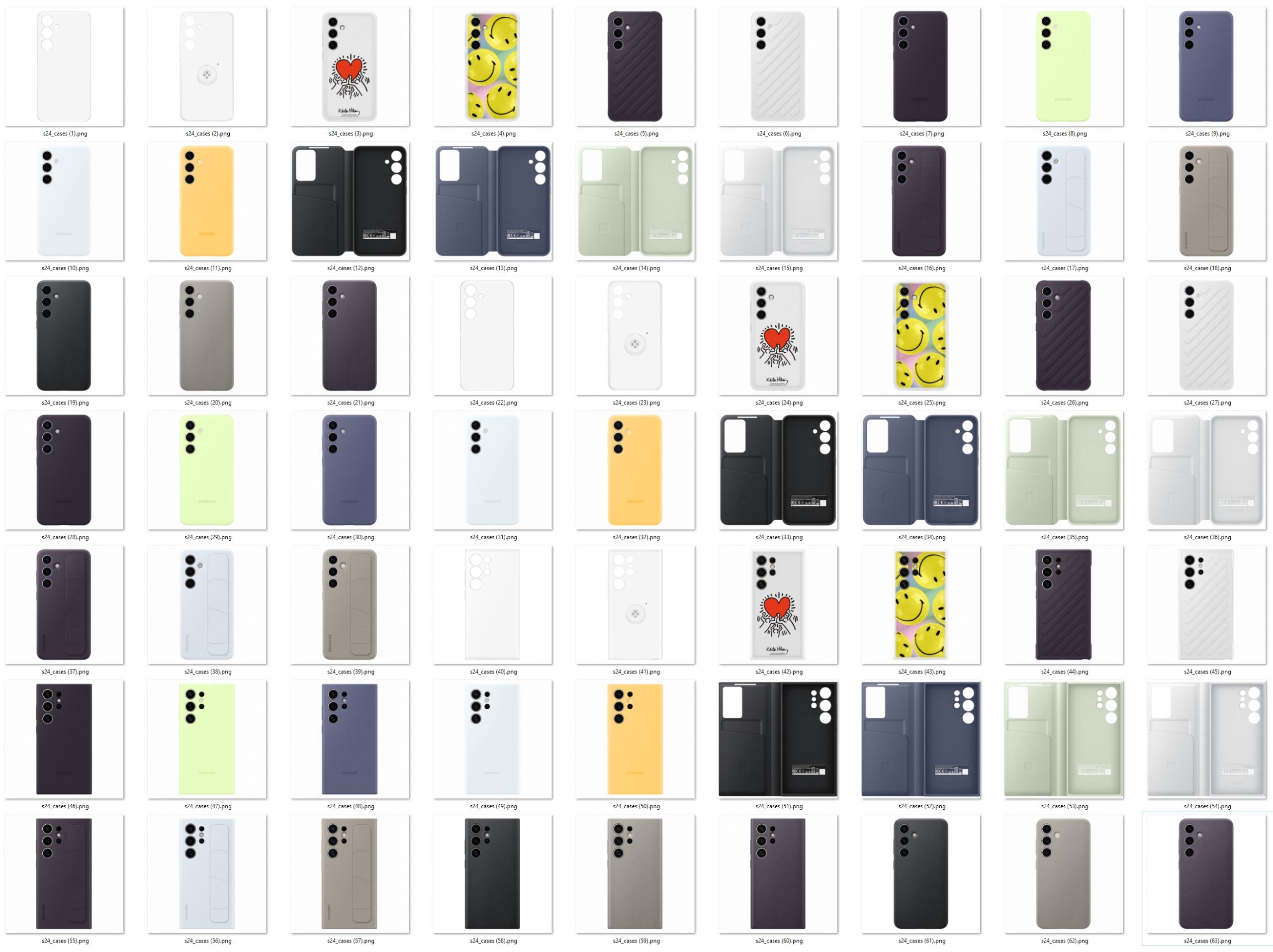 Okay, maybe not every case is visible in the image, as most of these seem to be plain silicone and/or leather cases in a range of pleasing colors. Some of the fancier ones include a silicone grip case and the Smart View Wallet case, but the rumored Suitcase, which will feature interchangeable plates that can change the wallpaper and UI theme on the device using NFC, is missing.