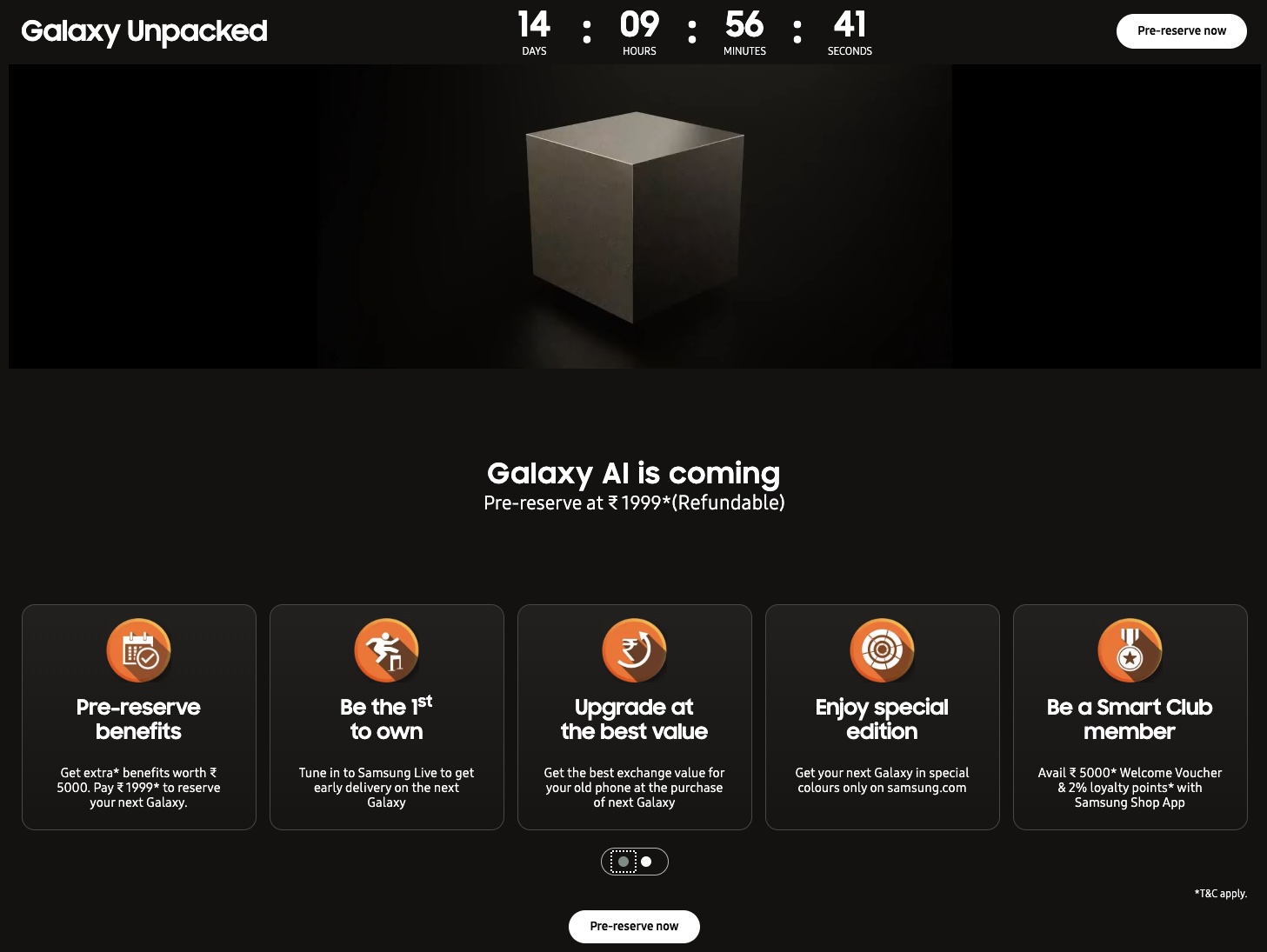 People in India can now pre-reserve a Galaxy S24 series phone by visiting this link and entering their name, phone number, and email ID. The webpage says, “Galaxy AI is coming,” and reveals the benefits that users can get by pre-reserving the Galaxy S24 after paying INR 1,999 ($24). This is a refundable deposit; if you decide not to buy the phone, you can get a complete refund. Those who decide to pre-reserve it will get the following benefits: