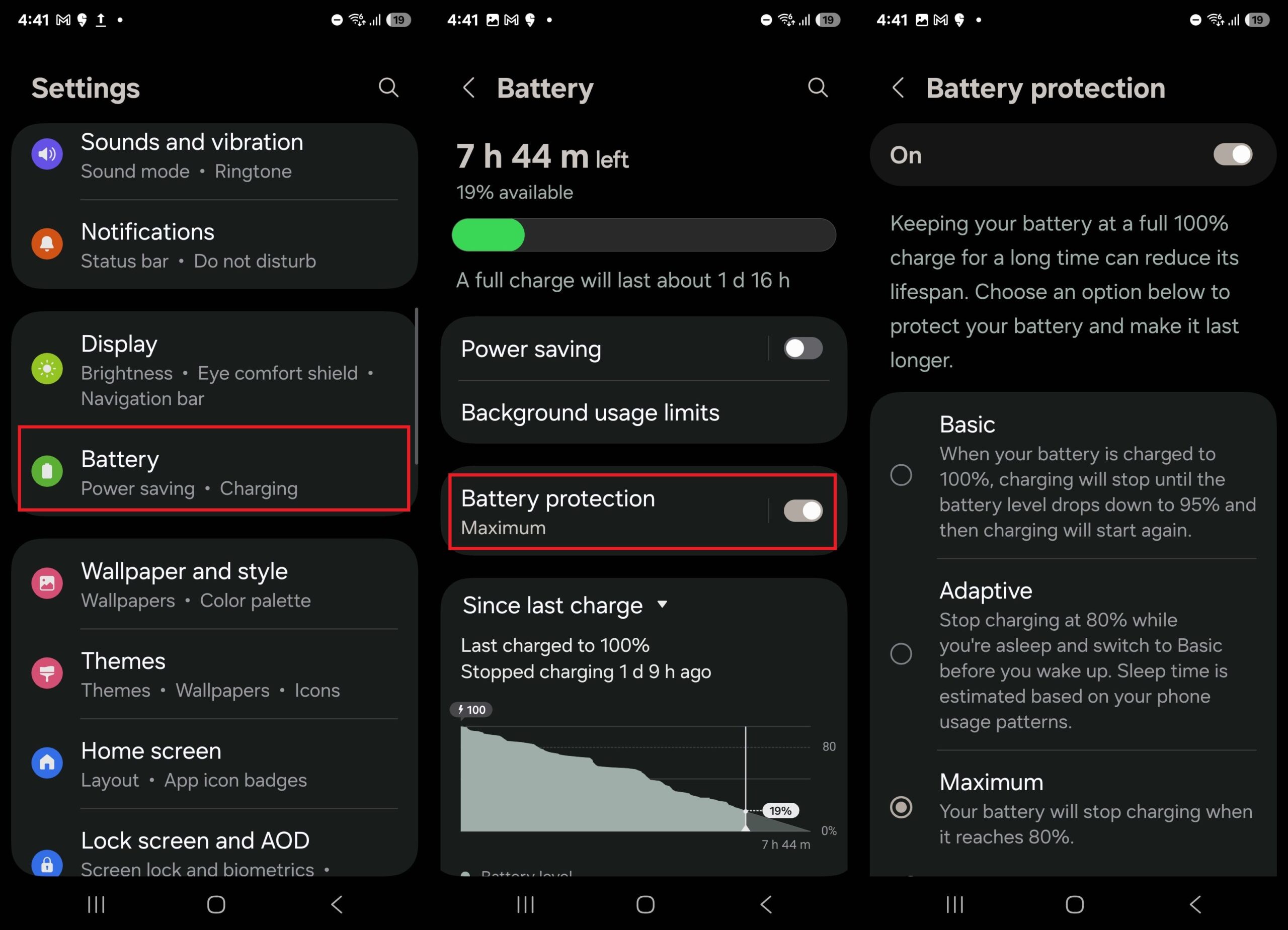 To improve the lifespan of your phone's battery, you should check out the battery protection options in the Settings » Battery » Battery protection menu.