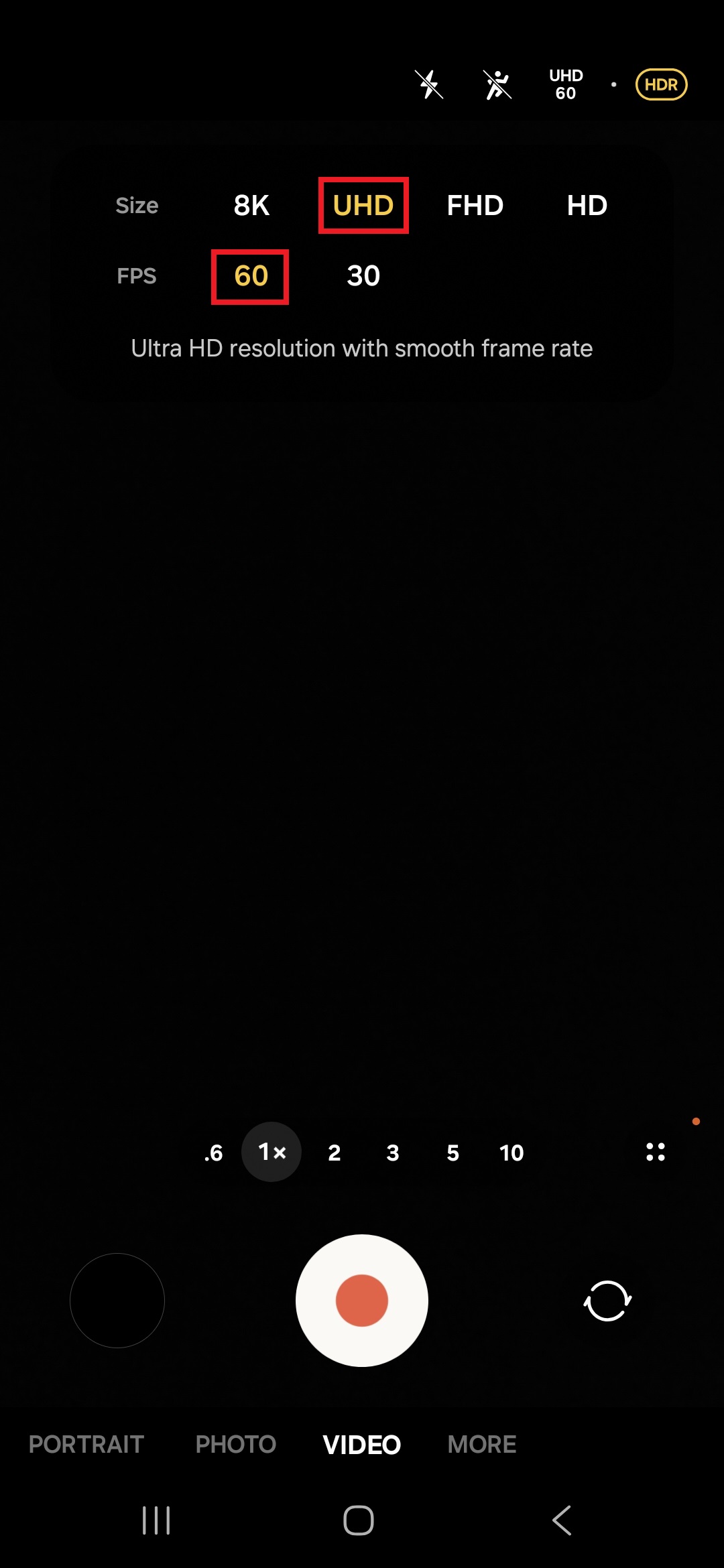 After you enable 4K recording, you can also enable 60 fps mode for smoother videos by tapping the relevant option right below the resolution changer.