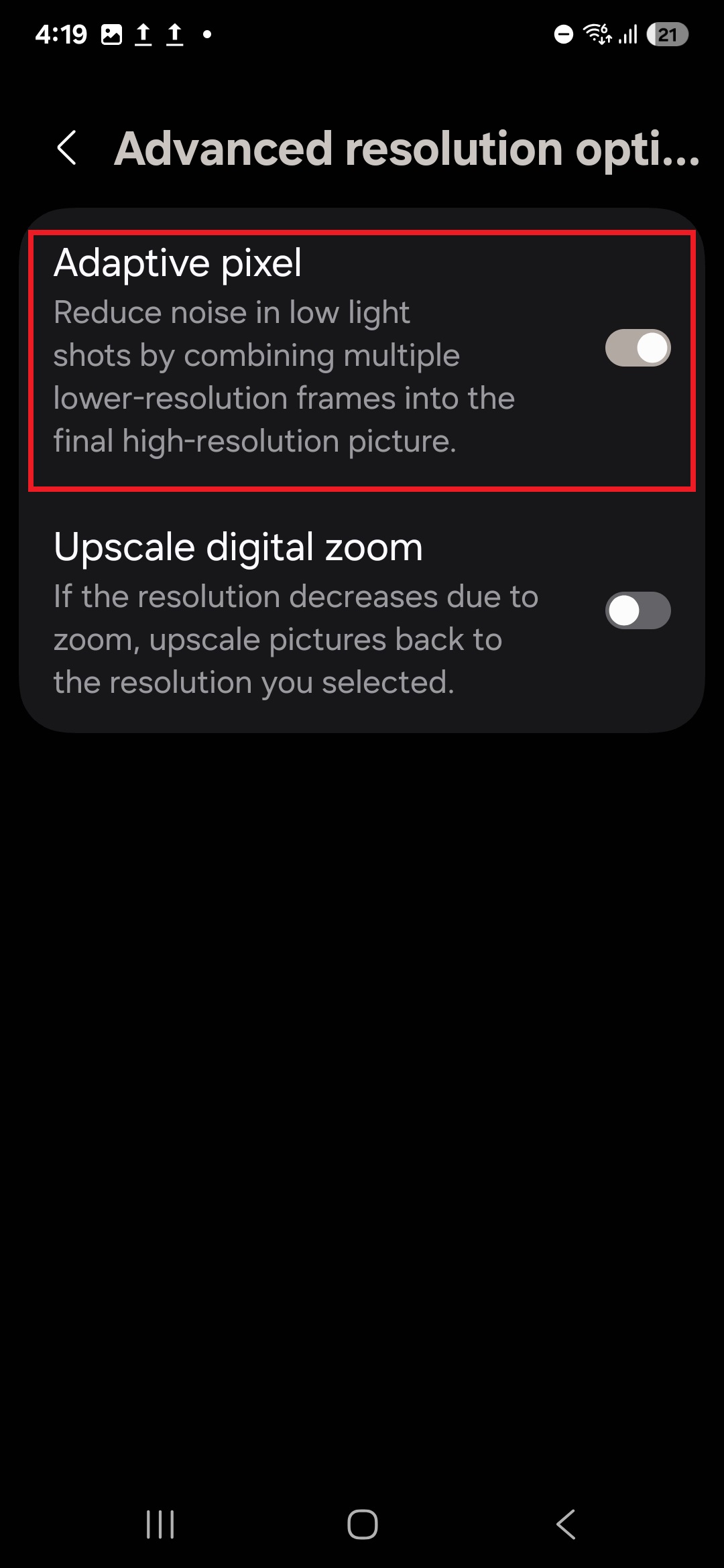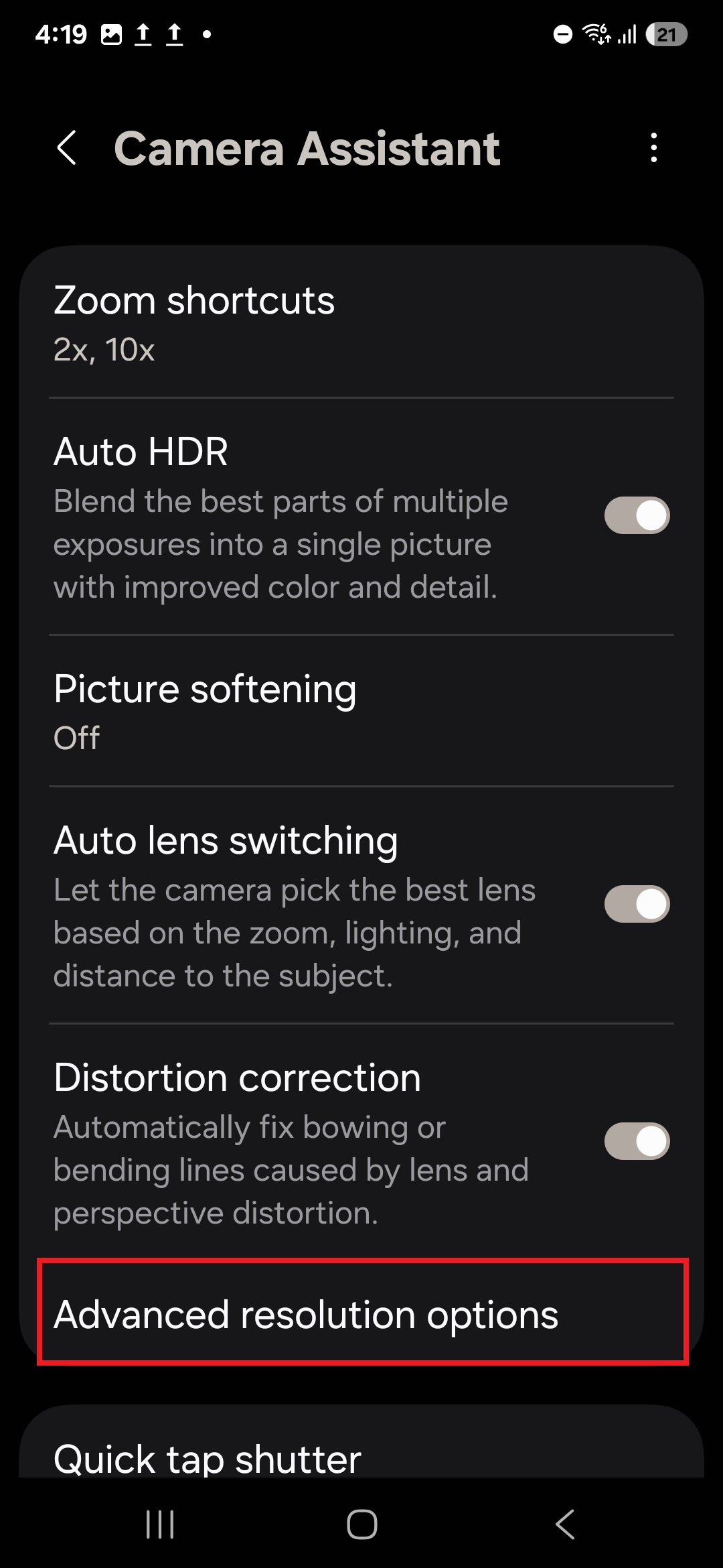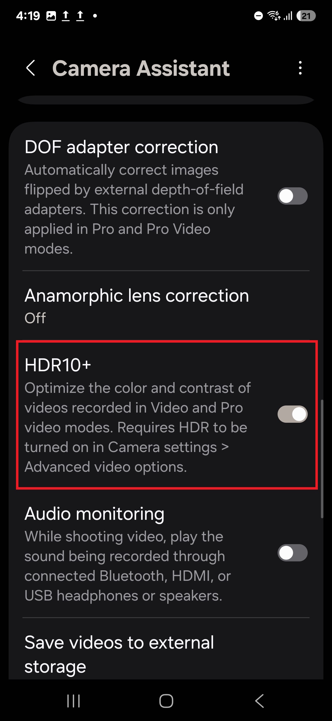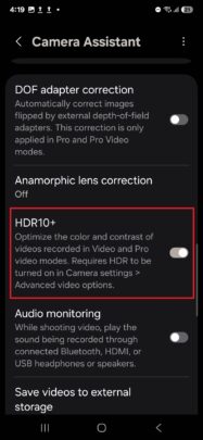 Some options that we recommend turning on in Camera Assistant are HDR10+ for better dynamic range along with punchier colors and contrast in videos and Adaptive pixel (found in Camera Assistant » Advanced resolution options for improved low-light pictures with reduced noise.