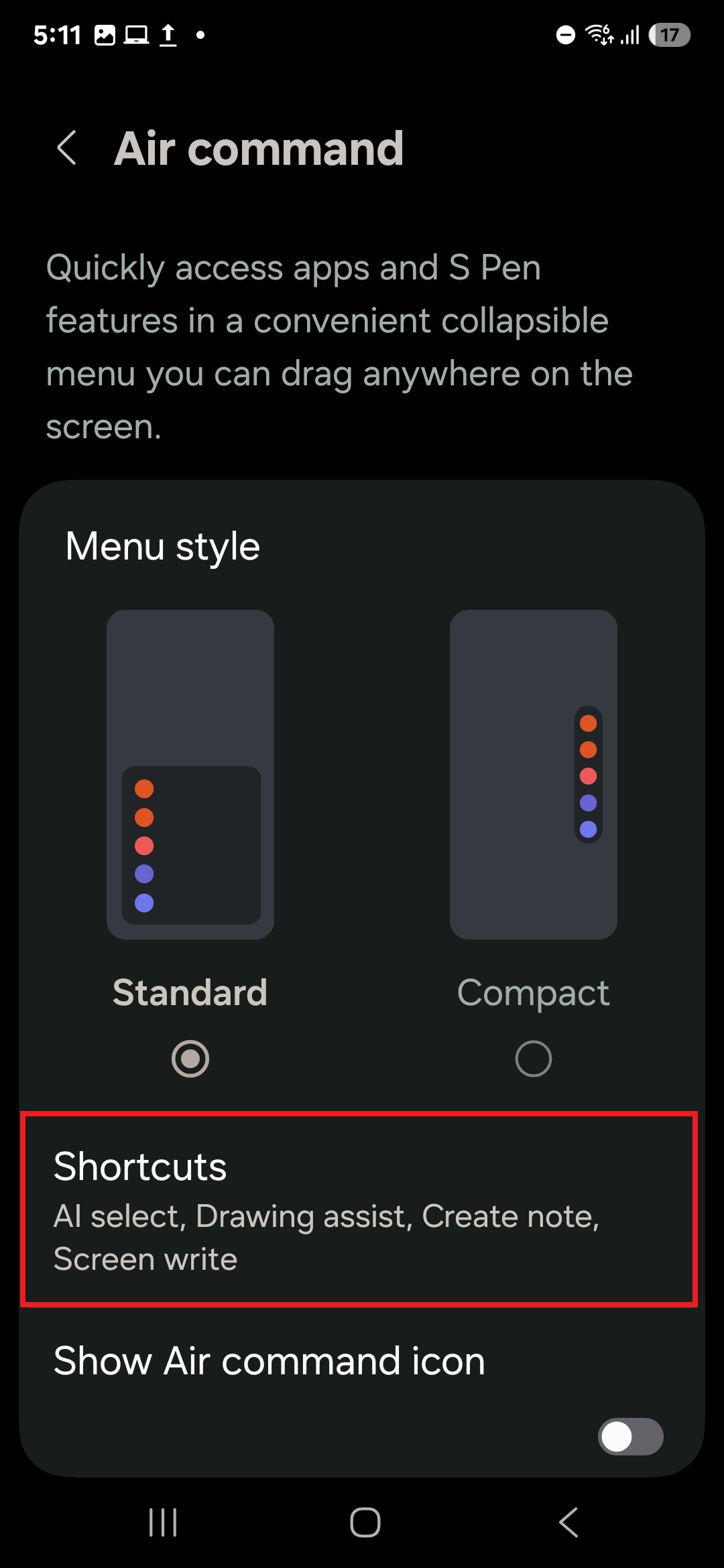 You can modify the Air Command menu to add shortcuts for more S Pen features and installed apps. To edit the Air Command menu, head into the Settings » Advanced features » S Pen menu and tap Air command, followed by Shortcuts. Then, press and hold the S Pen feature or app shortcut you wish to add to the menu and drag it to the right side of the screen.