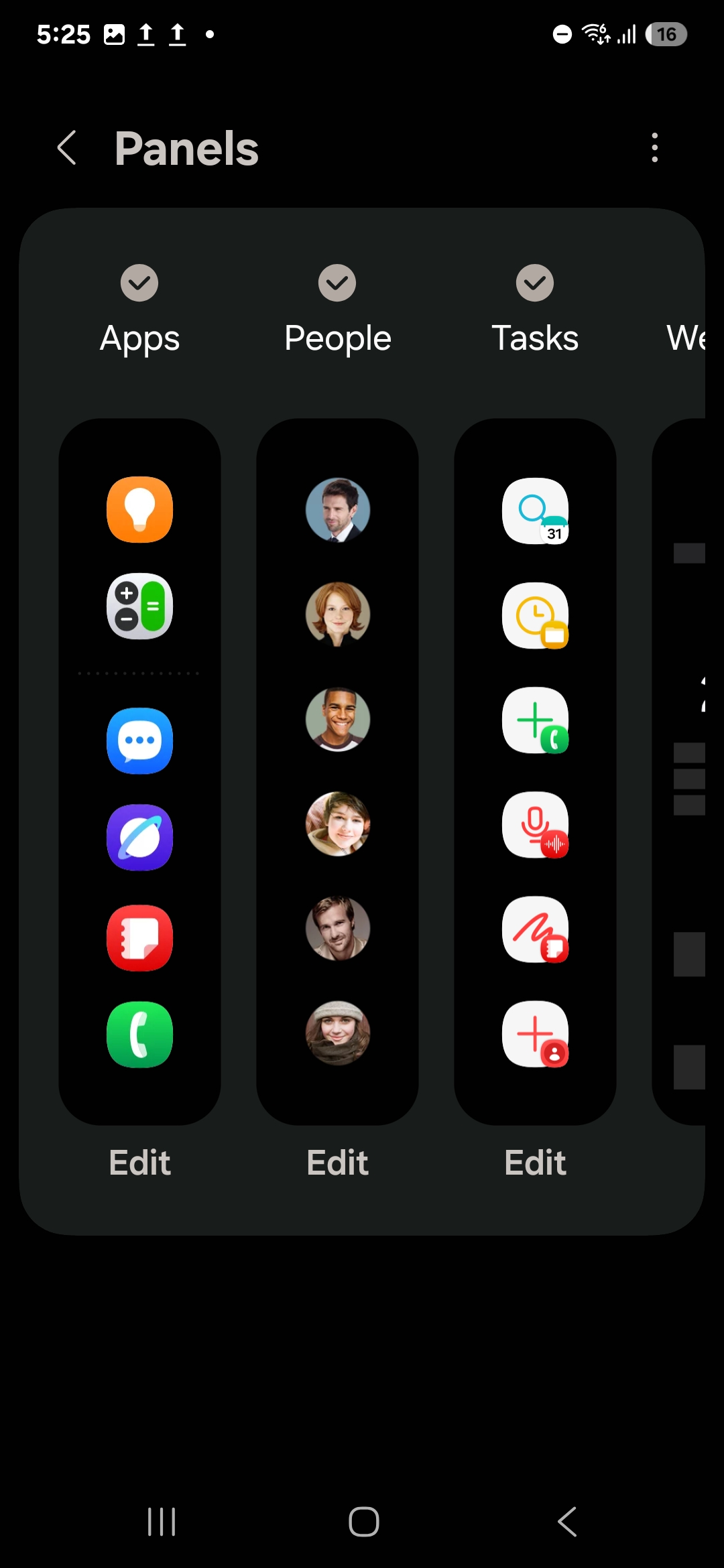 There are multiple panels to choose from. The Apps panel lets you quickly open your favorite apps, while the People panel is great for quickly dialing or messaging a contact.