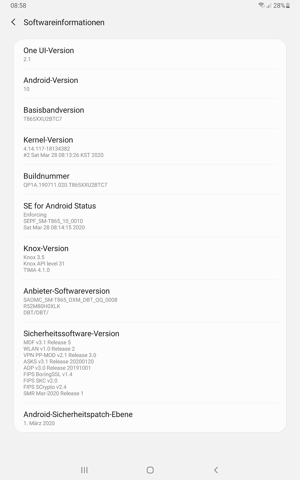 The Android 10 update comes with build number T865XXU2BTC7 and includes the March 2020 security patch. If you own a Galaxy Tab S6, you will be automatically notified about the update once it's available in your region. You can also manually check for it by tapping Download and install in the tablet's Settings » Software update menu. If that doesn't work, you can download Android 10 firmware from our archive and install it on your Tab S6 using a Windows PC.