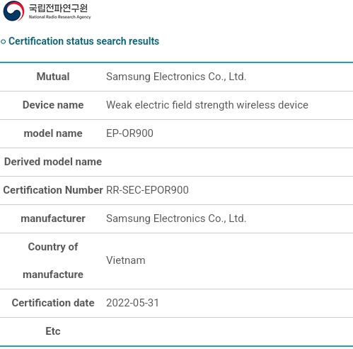 The Galaxy Watch 5 charger has model number “ER-OR900.” It corresponds to the “EB-BR900ABY” model number that was linked with the Galaxy Watch 5 battery not long ago.